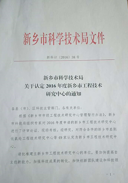 新鄉(xiāng)市科學(xué)技術(shù)局——關(guān)于認(rèn)定2016年度新鄉(xiāng)市工程技術(shù)研究中心的通知